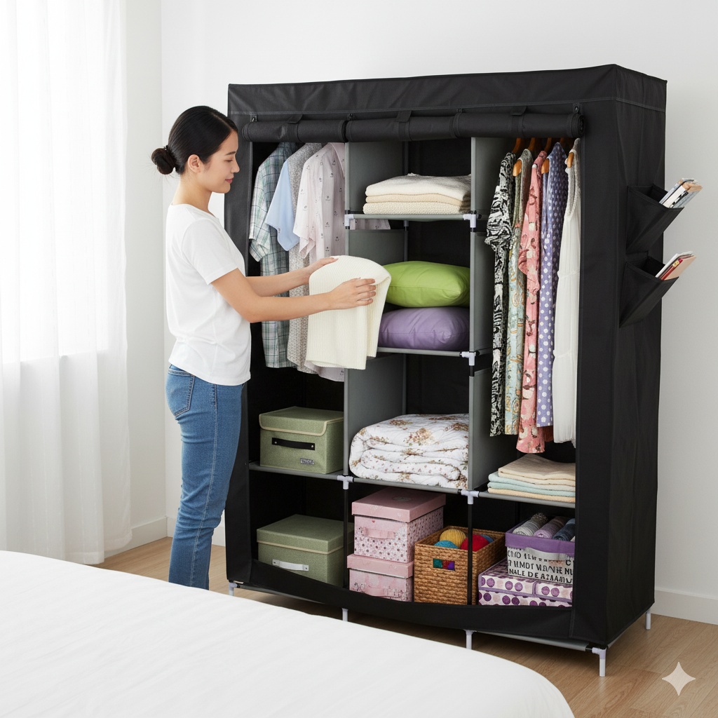 “Tu armario exprés: todo ordenado, protegido y listo en minutos.”