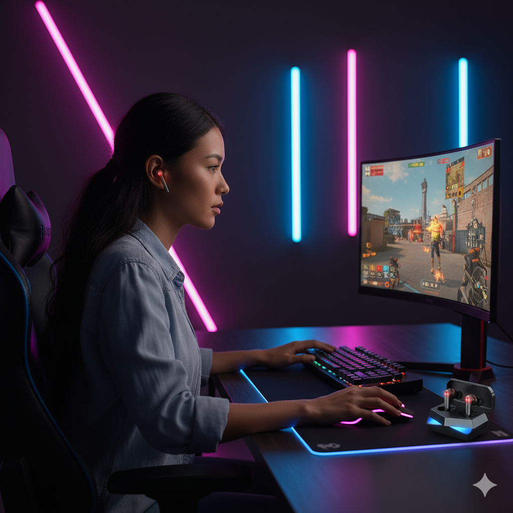 Estética moderna y dinámica que encaja en setups gamer o rutinas diarias.