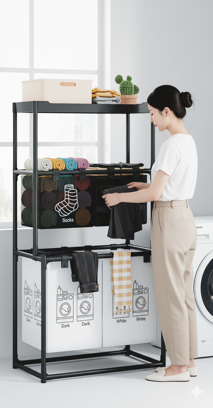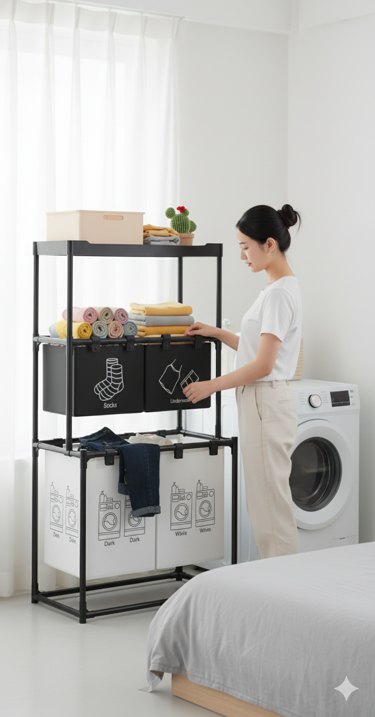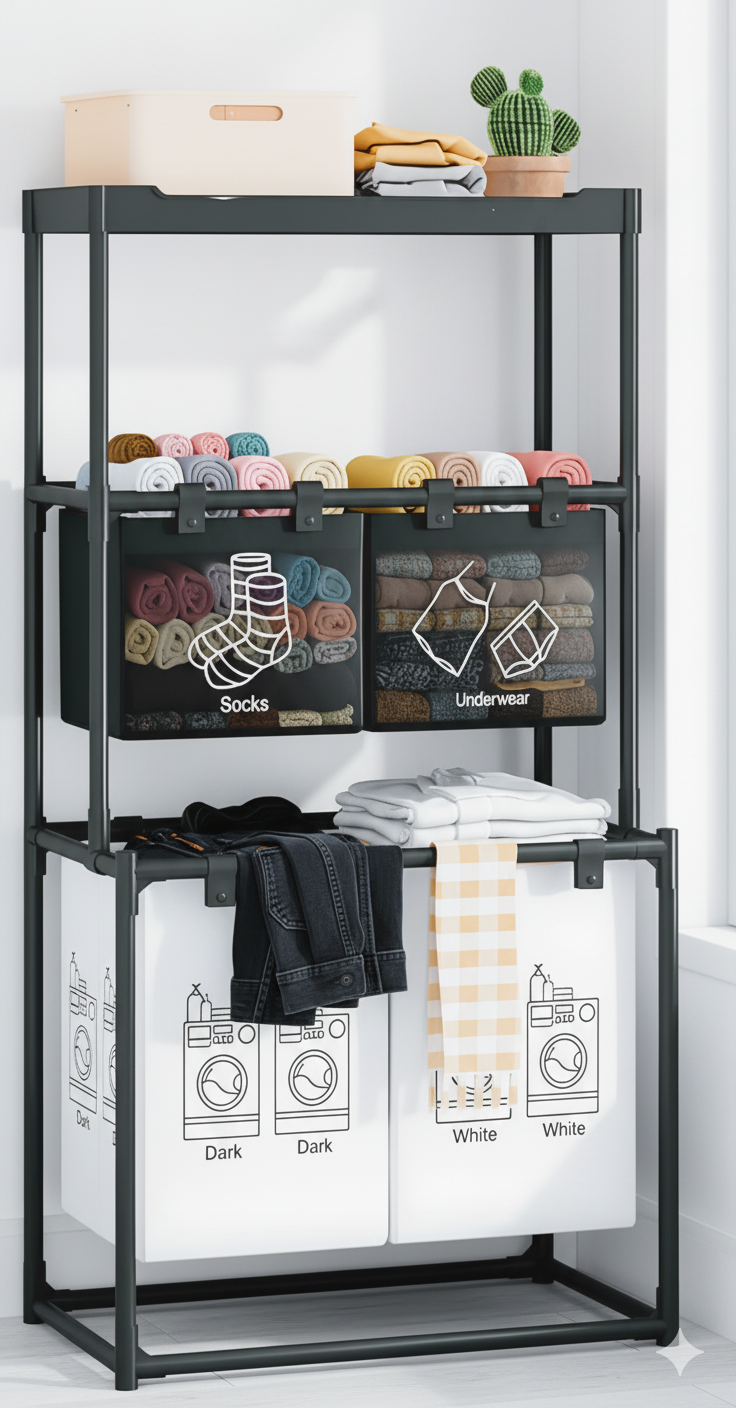 “Organiza tu colada con inteligencia: cuatro compartimentos, cero desorden.”