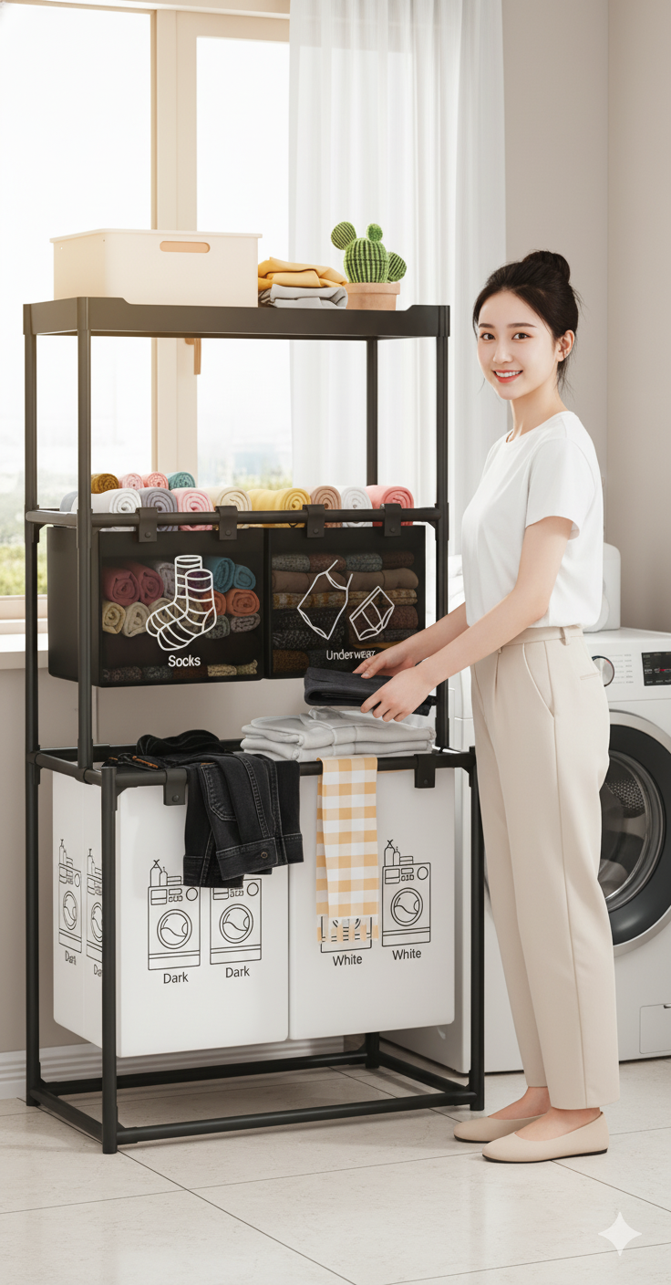 Haz que la colada sea más fácil, limpia y ordenada con el Cesto Doble de Lavandería 4 en 1 —una solución moderna y funcional para hogares que valoran el orden y la practicidad.