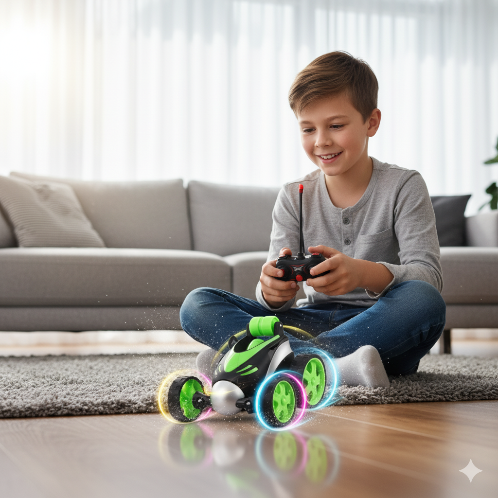 Con el Coche Teledirigido Acrobático – Giros 360° | Resistente y Versátil para Niños y Niñas llevas la diversión al máximo nivel. Este juguete está diseñado para quienes buscan emoción, rapidez y creatividad en cada partida. Su robusta estructura, ruedas antideslizantes y función de giros y volteretas ofrecen una experiencia única tanto en casa como al aire libre.