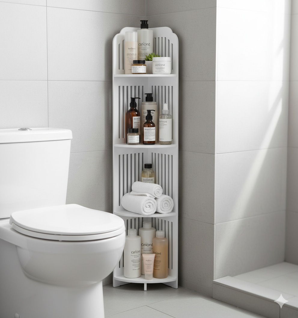 Estantería de Baño Triangular de Pie – Organizador de Esquina para Suministros de Baño con Diseño Compacto y Moderno.