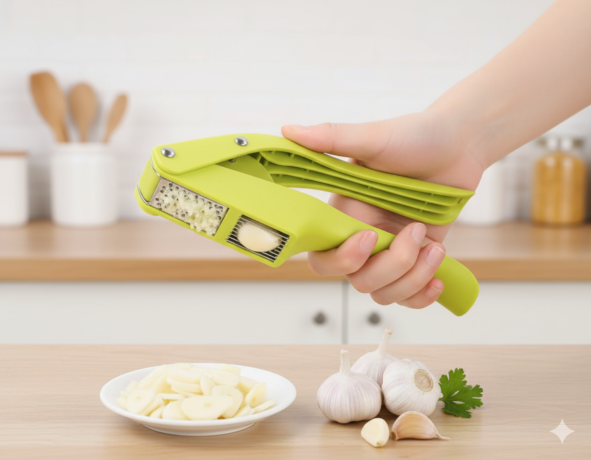 Con el Prensa de Ajos 2 en 1 llevas a tu cocina una herramienta intuitiva, versátil y profesional que te permite tanto triturar como cortar ajos (o jengibre) de forma rápida y limpia. Su funcionalidad 2 en 1 es precisamente lo que la diferencia: una cavidad para prensar y liberar sabor, otra para laminar y texturizar, todo en un solo utensilio.